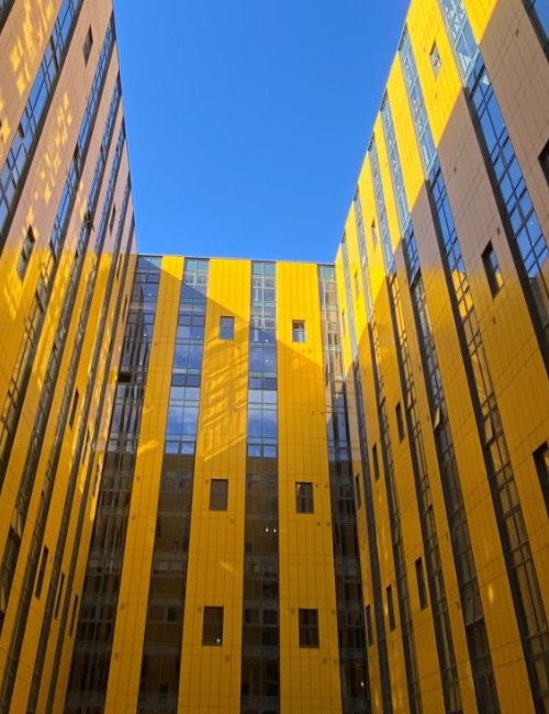 Our Slimwall™ flat panel system is available in aluminium, steel and Cor-ten and can be used either as a rainscreen or as a complete NON-COMBUSTIBLE insulated assembly.